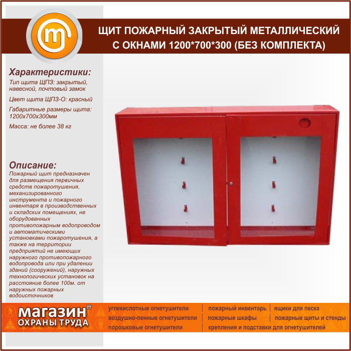 Щит пожарный закрытый металлический с окнами 1200*700*300 (без комплекта) в Черкесске купить