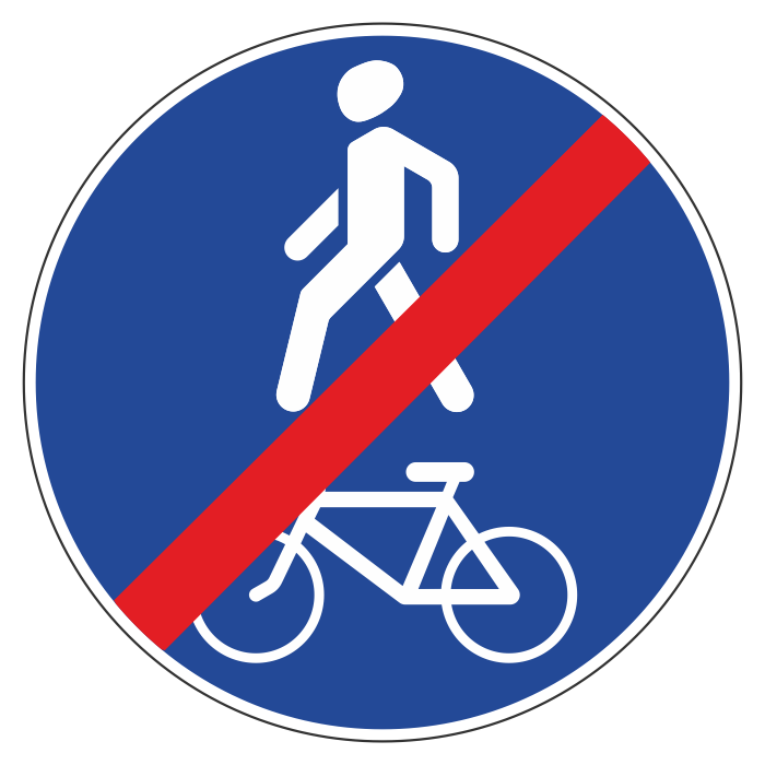 Дорожный знак 4.5.3 «Конец пешеходной и велосипедной дорожки с совмещенным движением» (металл 0,8 мм, II типоразмер: диаметр 700 мм, С/О пленка: тип А инженерная) в Черкесске купить