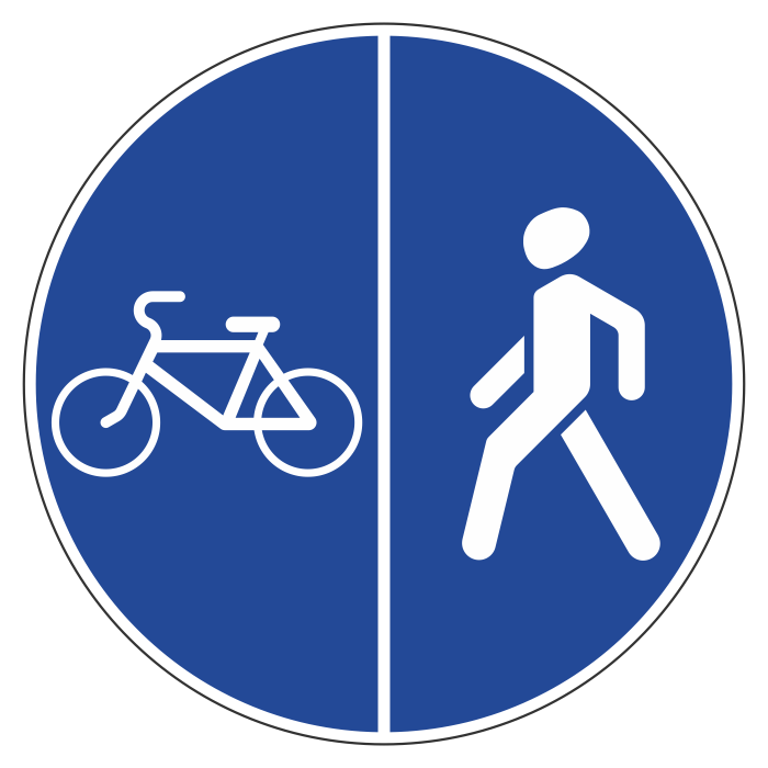 Дорожный знак 4.5.4 «Пешеходная и велосипедная дорожка с разделением движения» (металл 0,8 мм, II типоразмер: диаметр 700 мм, С/О пленка: тип А инженерная) в Черкесске купить