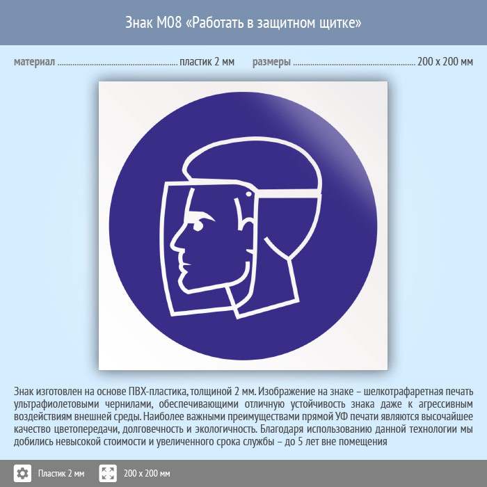 Знак M08 «Работать в защитном щитке» (пластик, 200х200 мм) в Черкесске купить