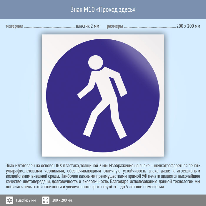 Знак M10 «Проход здесь» (пластик, 200х200 мм) в Черкесске купить