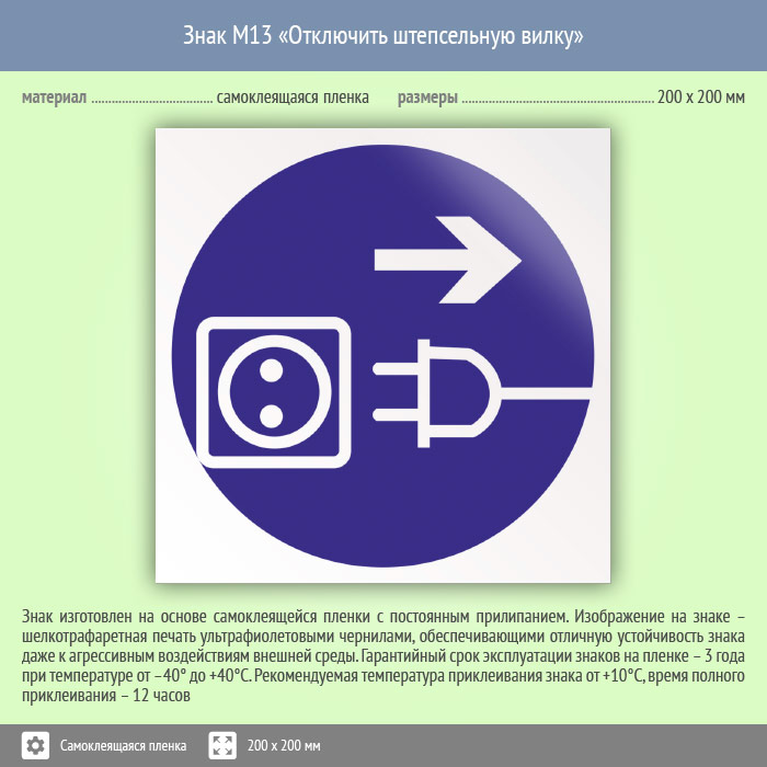 Знак M13 «Отключить штепсельную вилку» (пленка, 200х200 мм) в Черкесске купить
