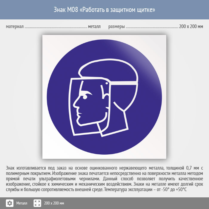Знак M08 «Работать в защитном щитке» (металл, 200х200 мм) в Черкесске купить
