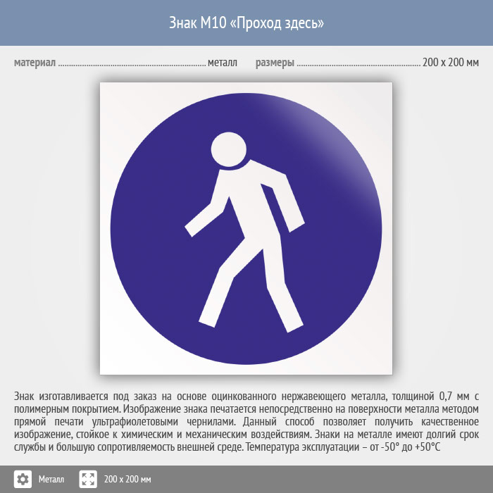 Знак M10 «Проход здесь» (металл, 200х200 мм) в Черкесске купить
