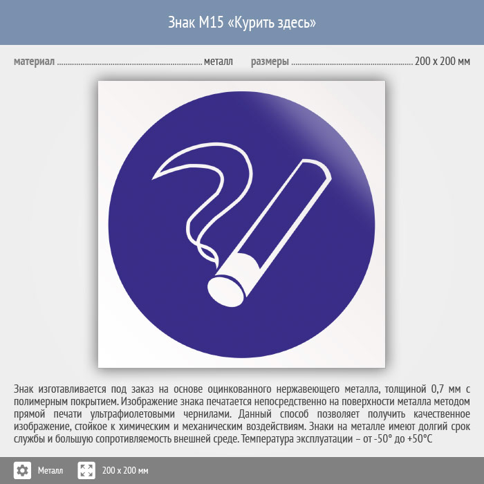 Знак M15 «Курить здесь» (исключен) (металл, 200х200 мм) в Черкесске купить