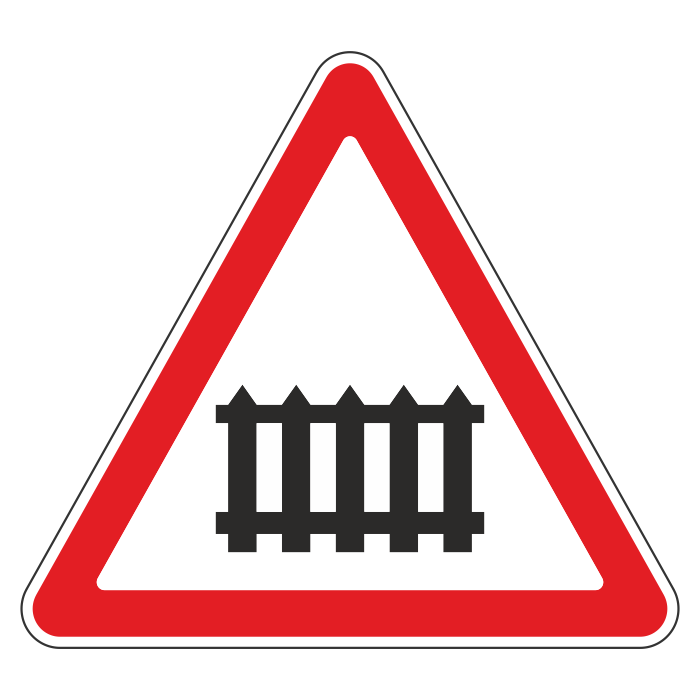 Дорожный знак 1.1 «Железнодорожный переезд со шлагбаумом» (металл 0,8 мм, III типоразмер: сторона 1200 мм, С/О пленка: тип А инженерная) в Черкесске купить