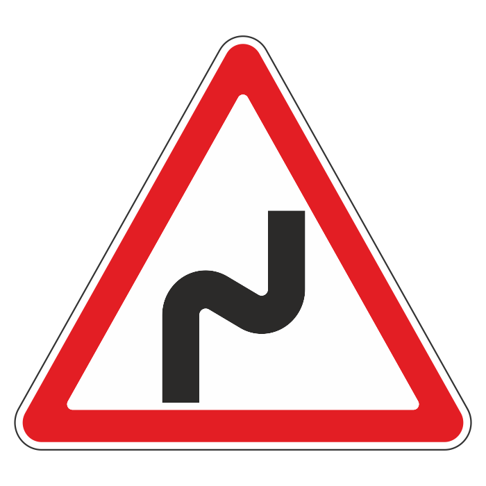 Дорожный знак 1.12.1 «Опасные повороты с первым поворотом направо» (металл 0,8 мм, II типоразмер: сторона 900 мм, С/О пленка: тип А коммерческая) в Черкесске купить