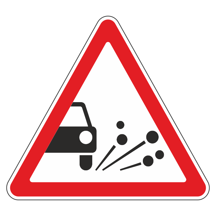 Дорожный знак 1.18 «Выброс гравия» (металл 0,8 мм, III типоразмер: сторона 1200 мм, С/О пленка: тип А инженерная) в Черкесске купить