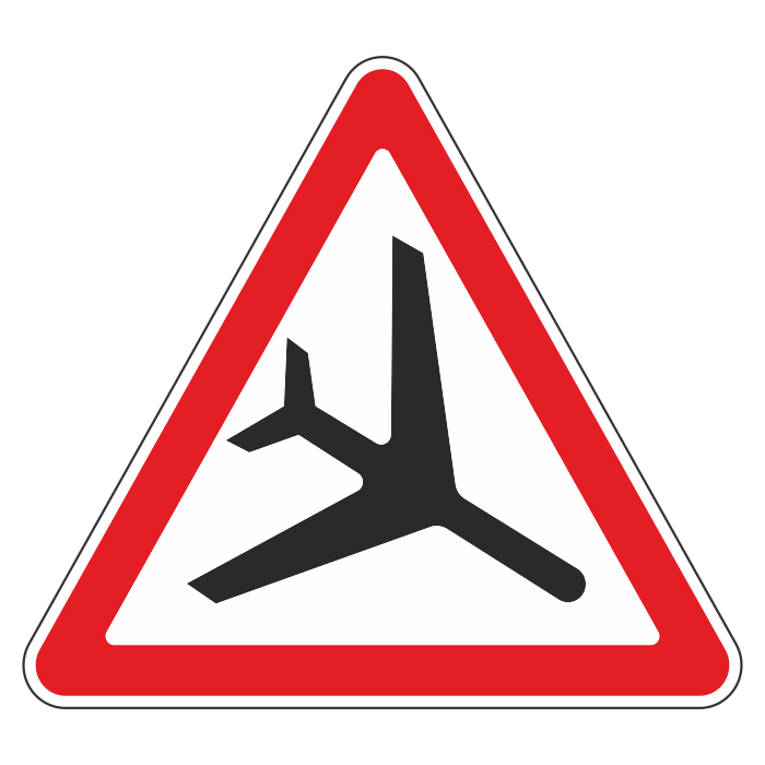 Дорожный знак 1.30 «Низколетящие самолеты» (металл 0,8 мм, III типоразмер: сторона 1200 мм, С/О пленка: тип А коммерческая) в Черкесске купить