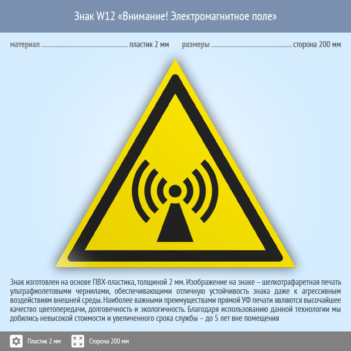 Знак W12 «Внимание! электромагнитное поле» (пластик, сторона 200 мм) в Черкесске купить