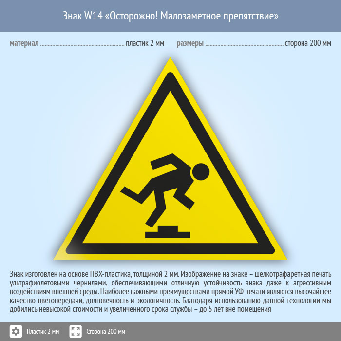 Знак W14 «Осторожно! малозаметное препятствие» (пластик, сторона 200 мм) в Черкесске купить