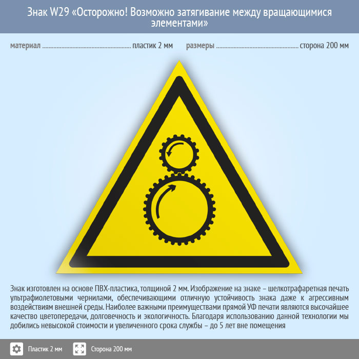 Знак W29 «Осторожно! возможно затягивание между вращающимися элементами» (пластик, сторона 200 мм) в Черкесске купить