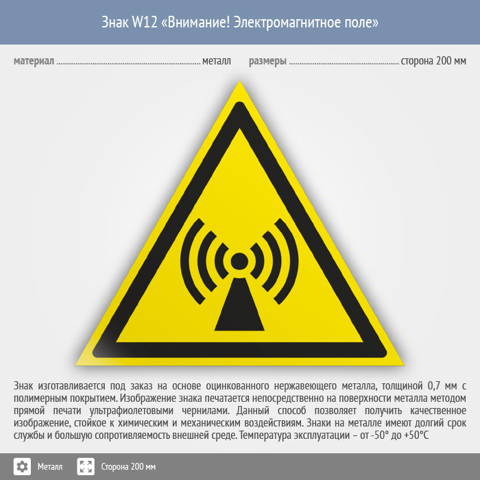 Знак W12 «Внимание! электромагнитное поле» (металл, сторона 200 мм) в Черкесске купить