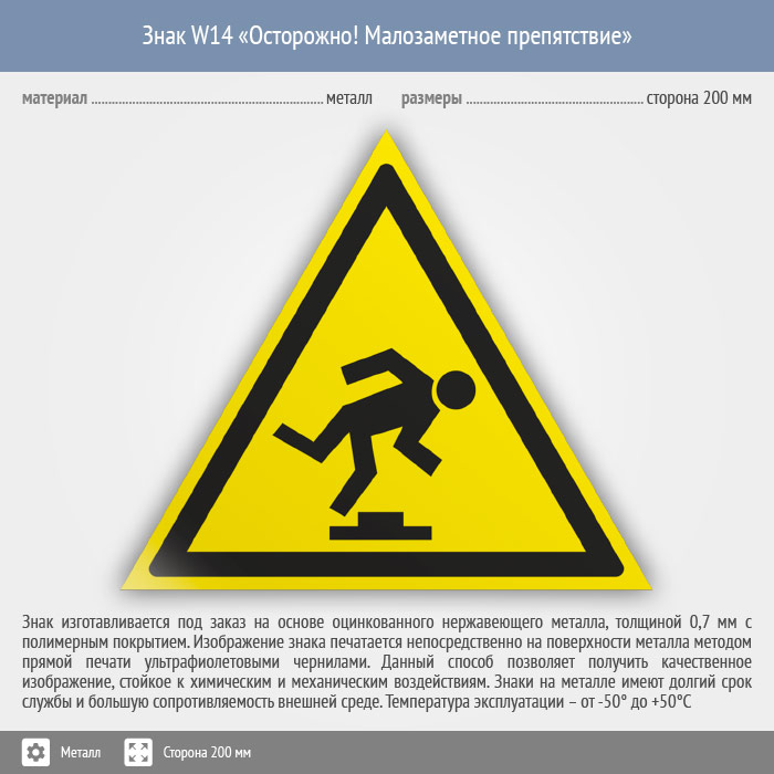 Знак W14 «Осторожно! малозаметное препятствие» (металл, сторона 200 мм) в Черкесске купить