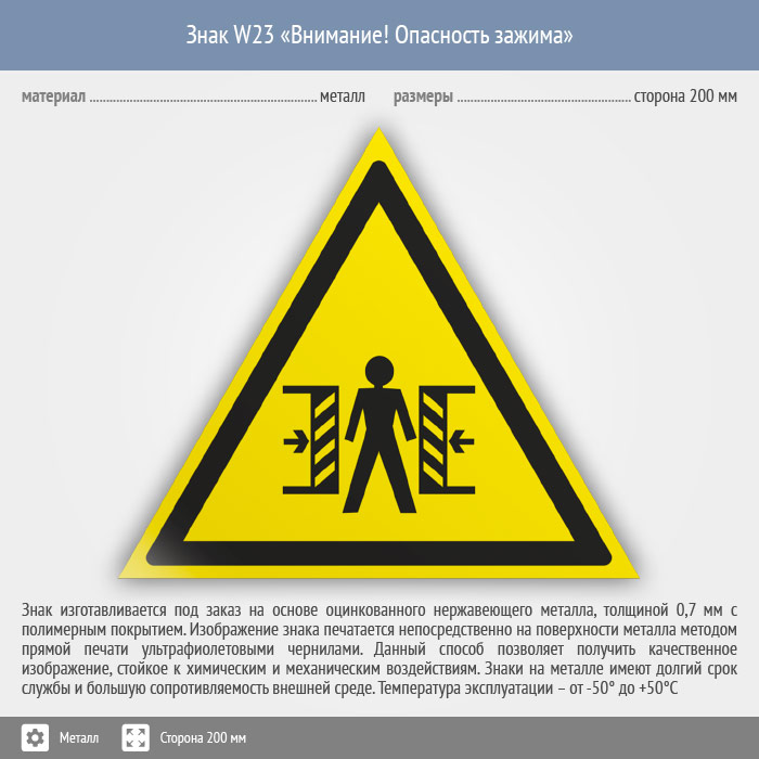 Знак W23 «Внимание! опасность зажима» (металл, сторона 200 мм) в Черкесске купить