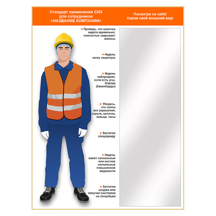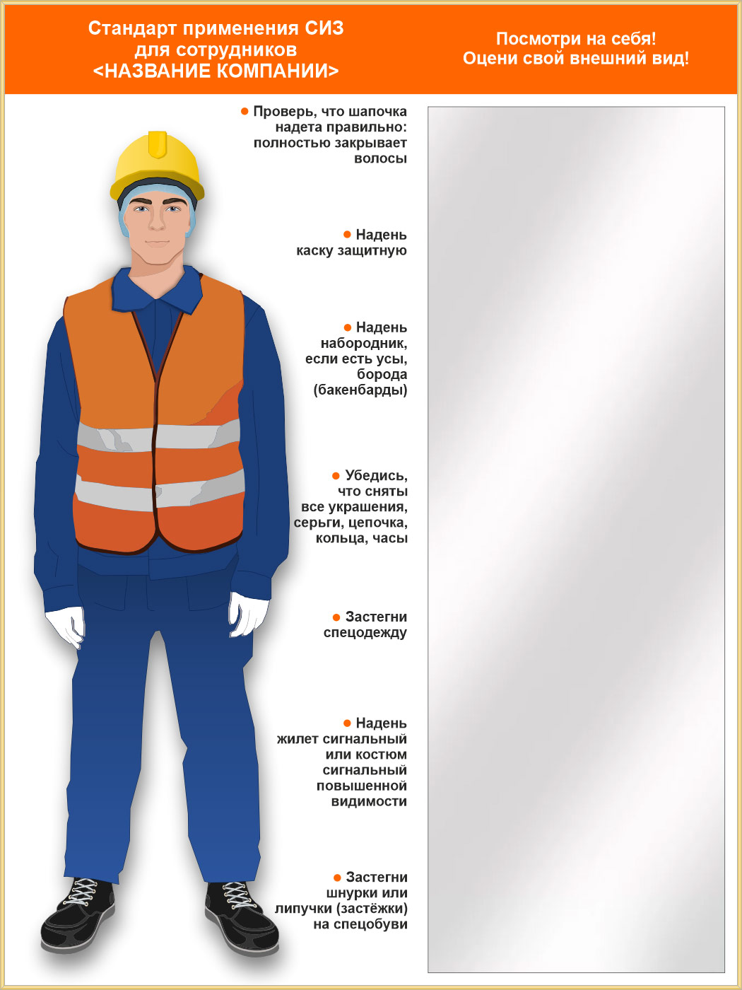 Стенд для демонстрации применения СИЗ с зеркалом, 1500х2000 мм в золотом багете (СПС-02.2-З) в Черкесске купить