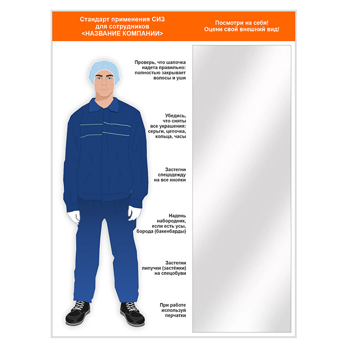 Стенд для демонстрации применения СИЗ с зеркалом, 1500х2000 мм в серебряном багете (СПС-03.2-С) в Черкесске купить
