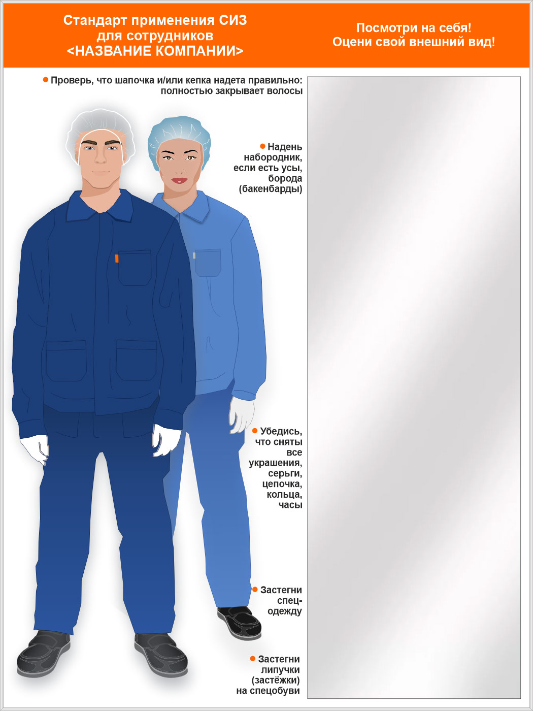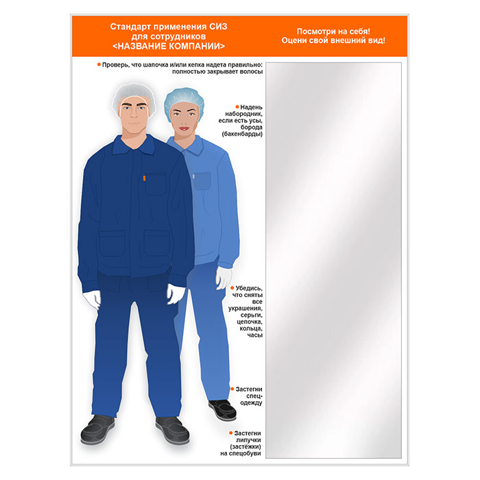 Стенд для демонстрации применения СИЗ с зеркалом, 1500х2000 мм в серебряном багете (СПС-04.2-С) в Черкесске купить