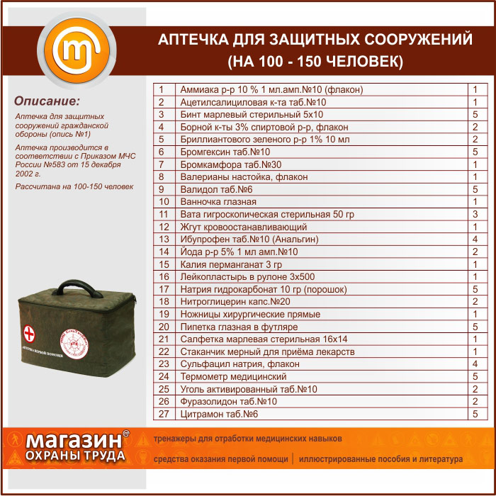 Аптечка для Защитных Сооружений (на 100 - 150 человек) - сумка в Черкесске купить