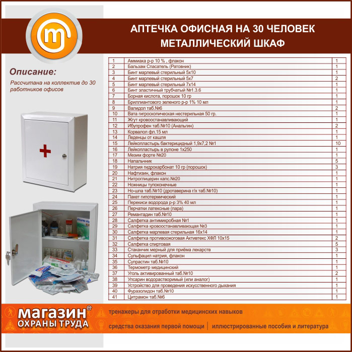 Аптечка ОФИСНАЯ (до 30 человек) - металлический шкаф | Аптечка ОФИСНАЯ (до 30 человек) - металлический шкаф |