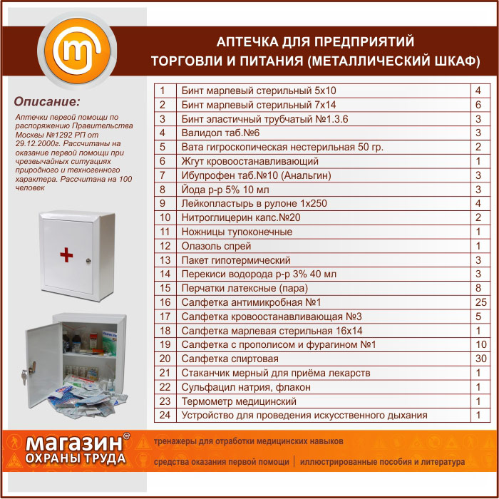 Аптечка для предприятий торговли и питания - (на 100 человек) - металлический шкаф в Черкесске купить