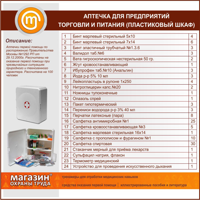 Аптечка для предприятий торговли и питания - (на 100 человек) - 2 пластиковых шкафа | Аптечка для предприятий торговли и питания - (на 100 человек) - 2 пластиковых шкафа |