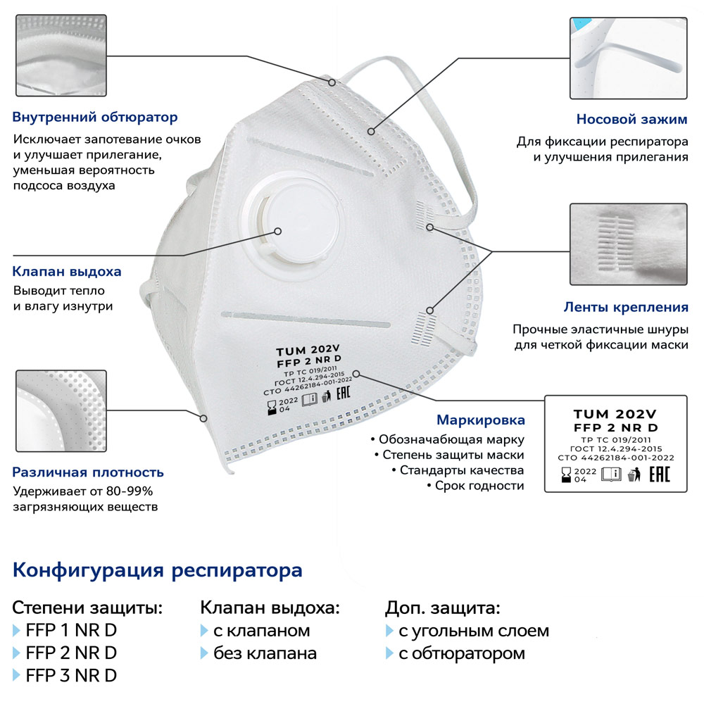 Респиратор противоаэрозольный TUM 312 (FFP3), к-т 10 шт в Черкесске купить