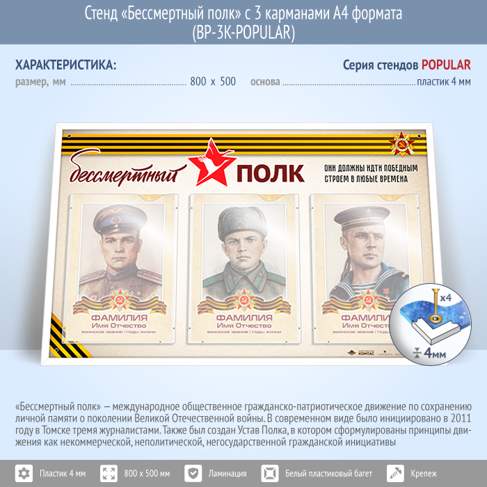 Стенд «Бессмертный полк» с 3 карманами А4 формата (BP-3K)