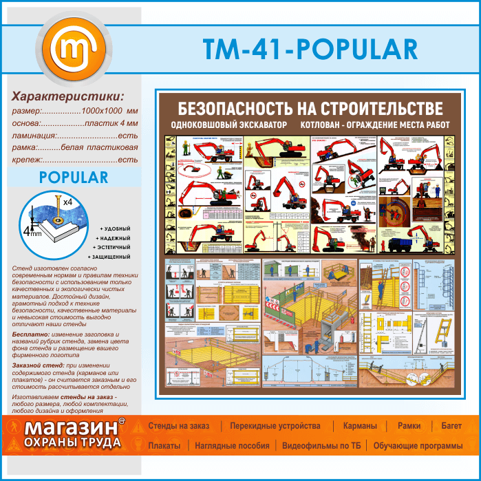 Стенд «Безопасность земляных работ. Экскаватор, котлован» (TM-41-POPULAR)
