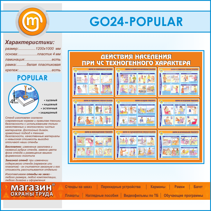 Стенд «Действия населения при ЧС техногенного характера» (GO-24-POPULAR)