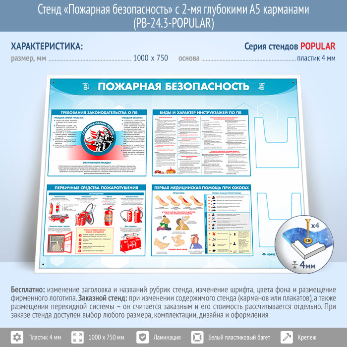 Стенд «Пожарная безопасность» с 2-мя глубокими А5 карманами (PB-24.3)