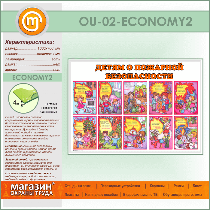 Стенд «Детям о пожарной безопасности» (OU-02-ECONOMY2) в Черкесске купить