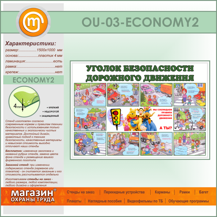 Стенд «Уголок безопасности дорожного движения» (OU-03-ECONOMY2) в Черкесске купить