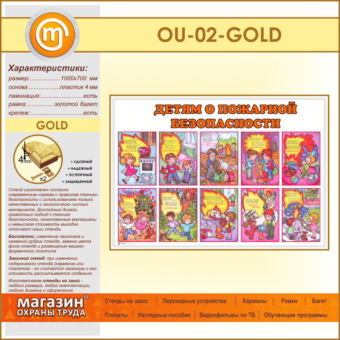 Стенд «Детям о пожарной безопасности» (OU-02-GOLD) в Черкесске купить
