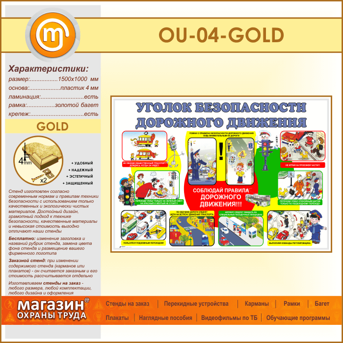 Стенд «Уголок безопасности дорожного движения» (OU-04-GOLD) в Черкесске купить