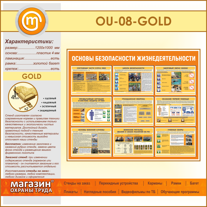 Стенд «Основы безопасности жизнедеятельности» (OU-08-GOLD) в Черкесске купить