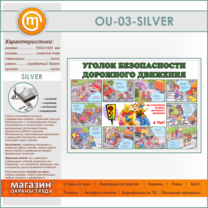Стенд «Уголок безопасности дорожного движения» (OU-03-SILVER) в Черкесске купить