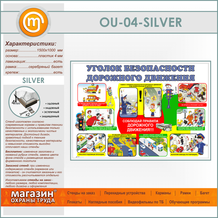 Стенд «Уголок безопасности дорожного движения» (OU-04-SILVER) в Черкесске купить