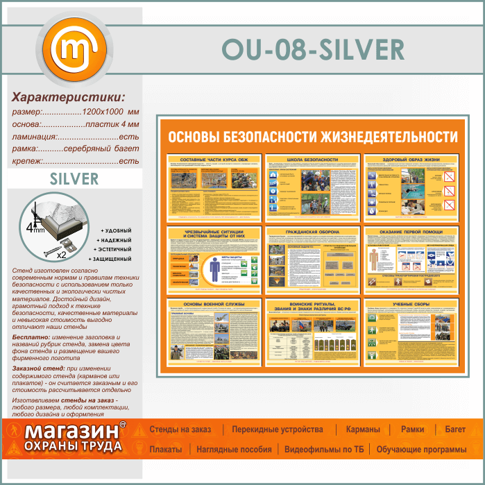 Стенд «Основы безопасности жизнедеятельности» (OU-08-SILVER) в Черкесске купить
