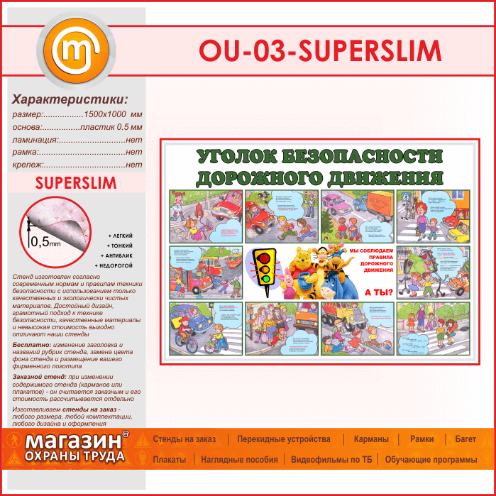 Стенд «Уголок безопасности дорожного движения» (OU-03-SUPERSLIM) в Черкесске купить