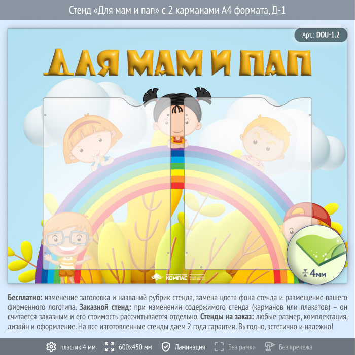 Стенд «Для мам и пап» с 2 карманами А4 формата (DOU-1.2) в Черкесске купить