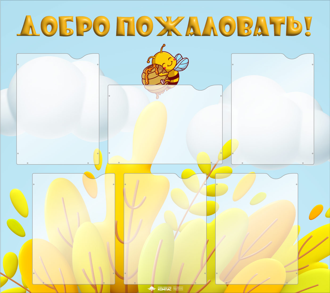 Стенд «Добро пожаловать!» с 6 карманами А4 формата (DOU-1.5) в Черкесске купить