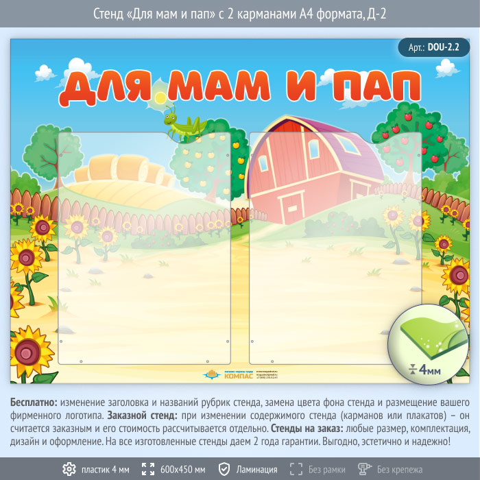 Стенд «Для мам и пап» с 2 карманами А4 формата (DOU-2.2) в Черкесске купить