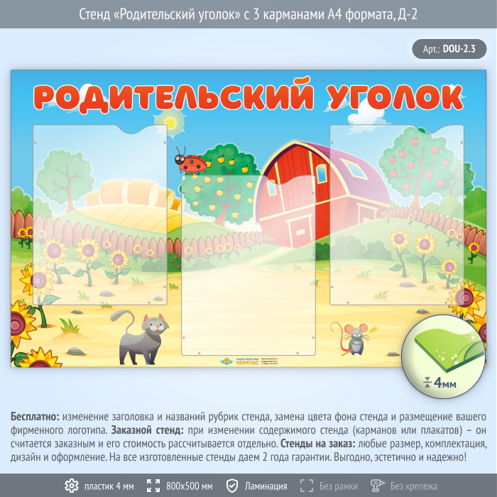 Стенд «Родительский уголок» с 3 карманами А4 формата (DOU-2.3) в Черкесске купить