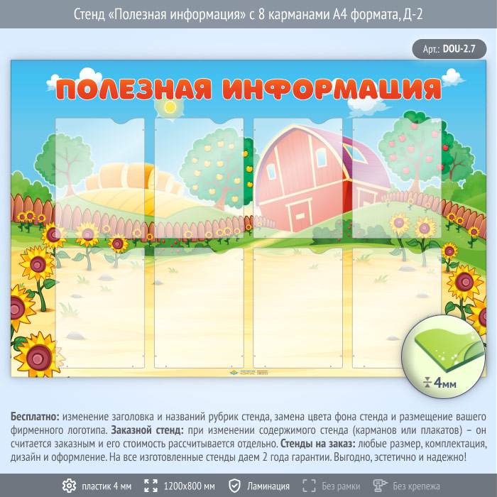 Стенд «Полезная информация» с 8 карманами А4 формата (DOU-2.7) в Черкесске купить
