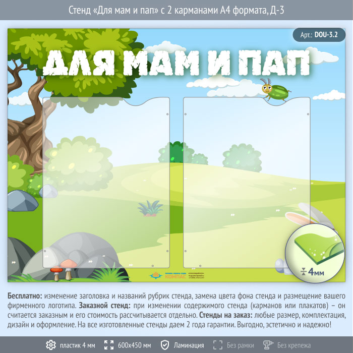 Стенд «Для мам и пап» с 2 карманами А4 формата (DOU-3.2) в Черкесске купить