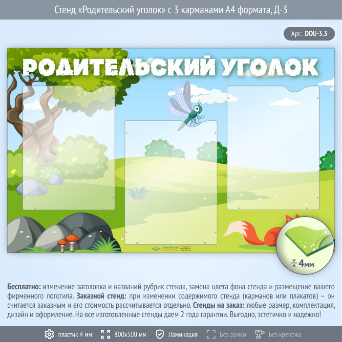 Стенд «Родительский уголок» с 3 карманами А4 формата (DOU-3.3) в Черкесске купить