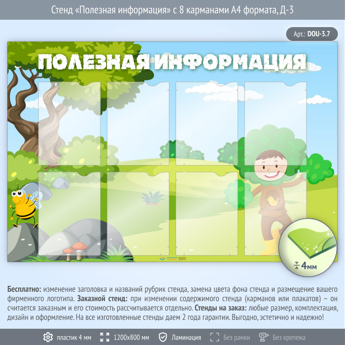 Стенд «Полезная информация» с 8 карманами А4 формата (DOU-3.7) в Черкесске купить