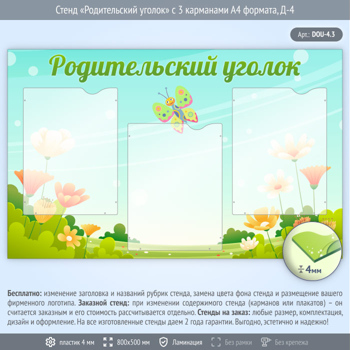 Стенд «Родительский уголок» с 3 карманами А4 формата (DOU-4.3) в Черкесске купить