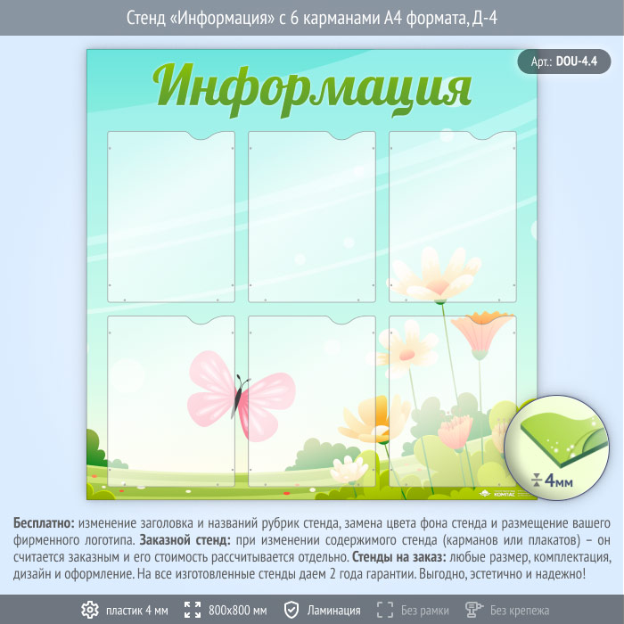 Стенд «Информация» с 6 карманами А4 формата (DOU-4.4) в Черкесске купить